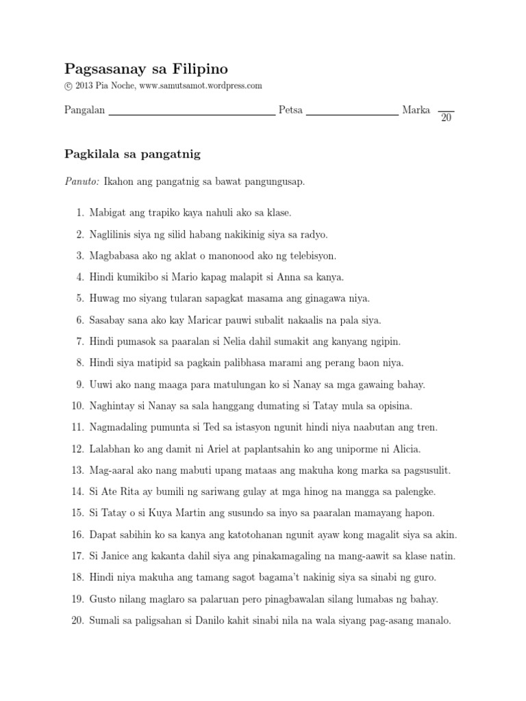 Pagpili ng tamang pangatnig Pangalan Petsa Marka 20 Panuto. This 20-item worksheet asks the student. Enter your email address to subscribe to Samut-samot and receive notifications of new posts by email.