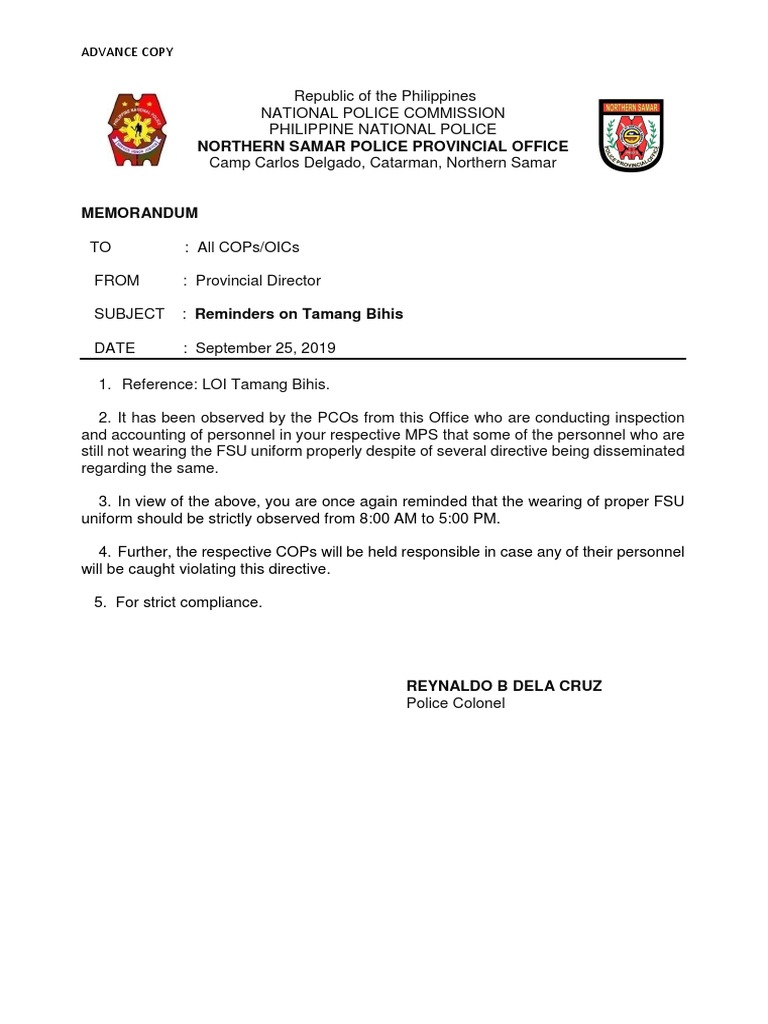 The activity also serves as the venue to disseminate current issuances directives policies and guidelines to all PNP Personnel. As a result of the consistent dissemination and continuing education of PRO2 personnel relative to LOI Tamang Bihis.