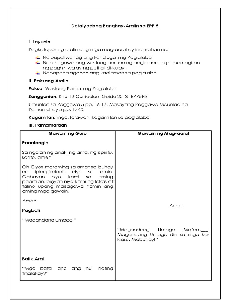 Detalyadong Banghay Aralin Sa Epp 5