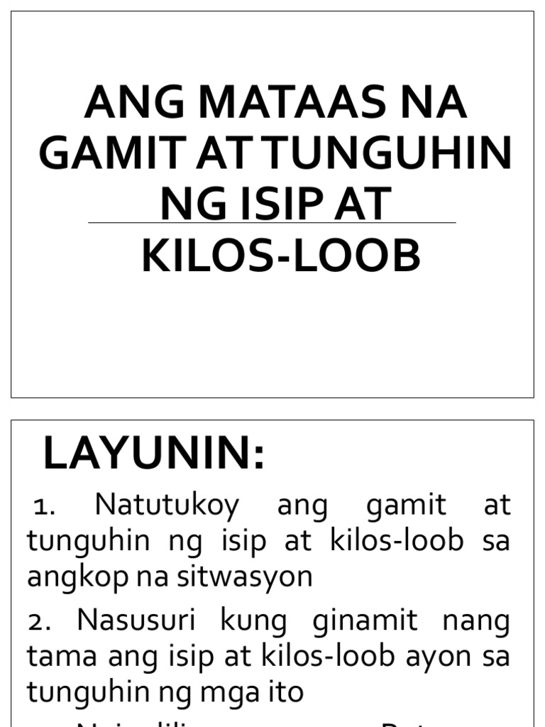 Ang Mataas Na Gamit At Tunguhin Ng Isip Pptx